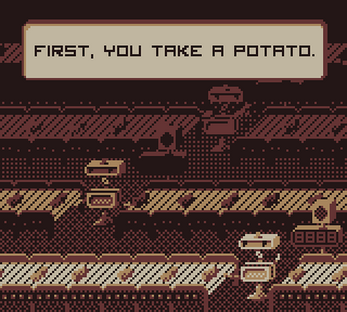 First, You Take A Potato is about a robot named POT4 whose sole function is to take and then put down potatoes. It is a simple life, but is it a good one?